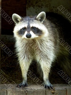 Raccoon in wooden house